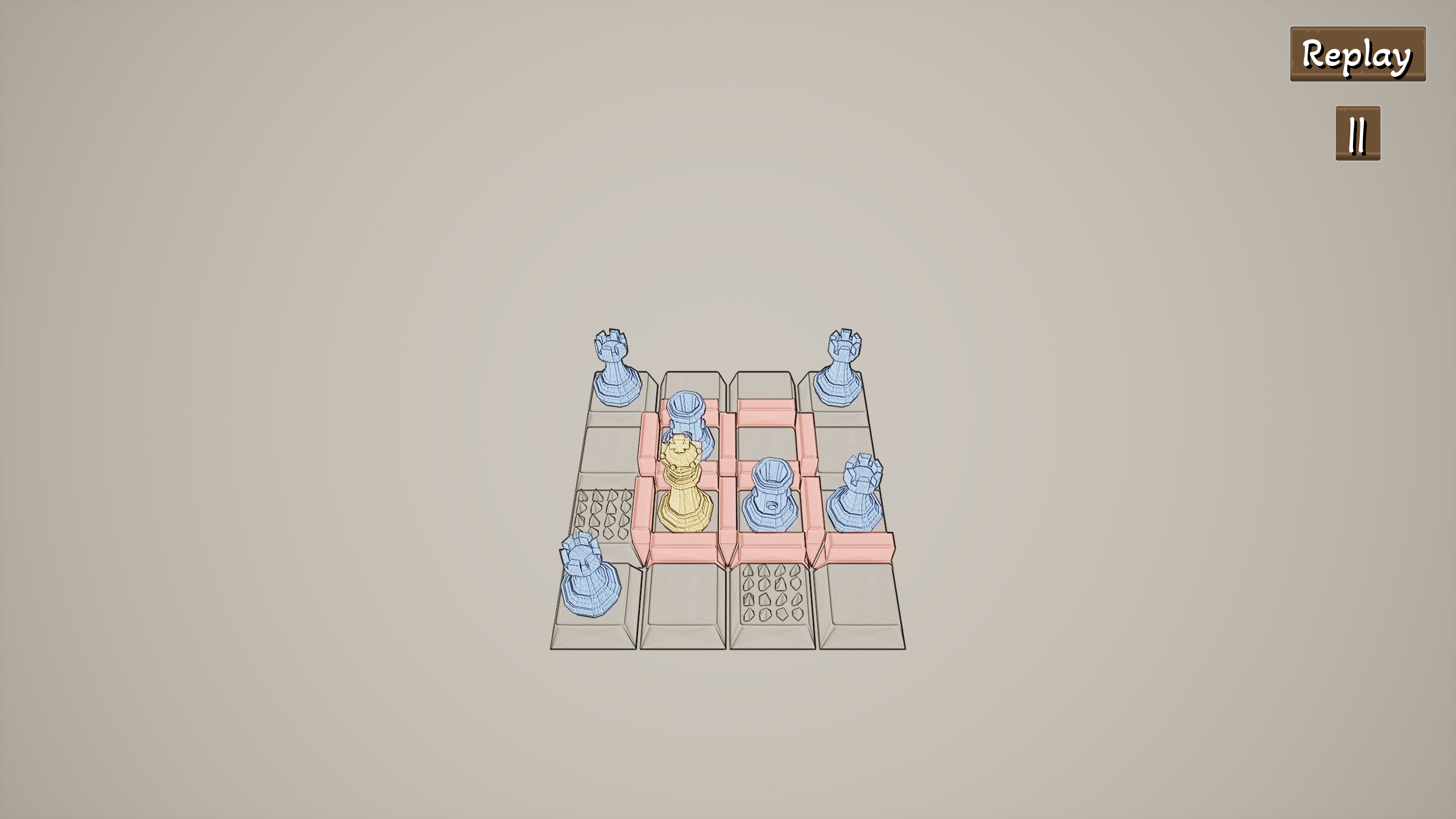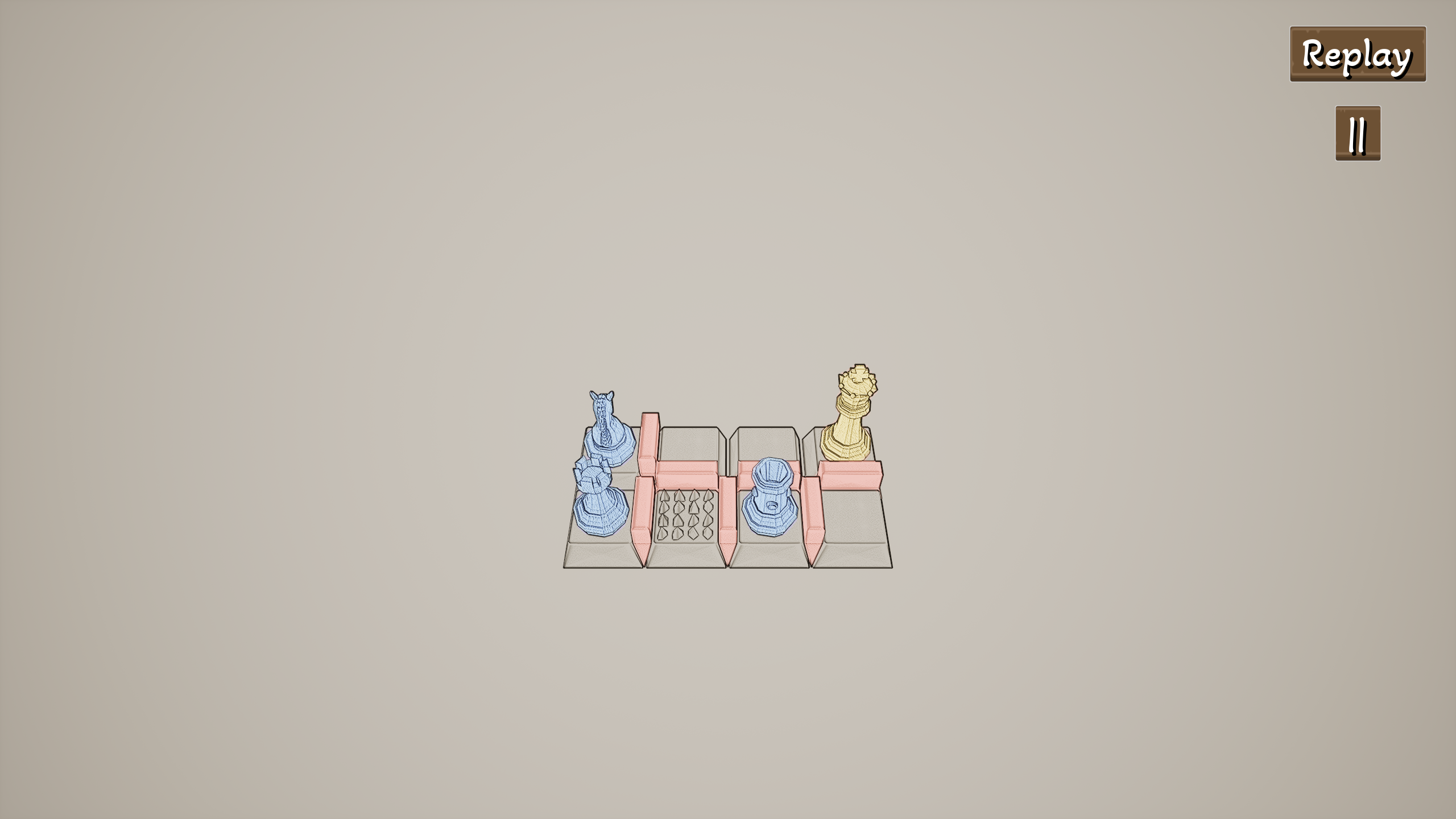 "JU, QI, PAO" is an international chess-themed first-person perspective casual puzzle game. Players can control three types of pieces: the chariot, the horse, and the cannon. Each type of piece has a unique special ability and can move on the grid-like chessboard. The number of moves and the usage times of special abilities for each level are limited. Players need to fully utilize the special abilities of each piece, think about how to move the pieces to capture the "king" in each level and then pass the level.